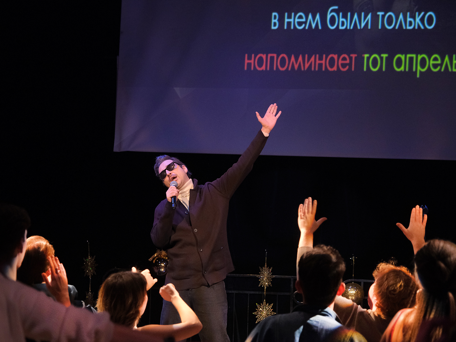 В Малом зале актеры "Et Cetera" показали музыкальный капустник. Это был настоящий театральный праздник - яркий, зажигательный, очень талантливо сделанный. В исполнении артистов прозвучали хиты звезд эстрады, под которые весь коллектив с удовольствием танцевал. Также в этот вечер был показан новогодний видеоролик, специально подготовленный для этого праздника.