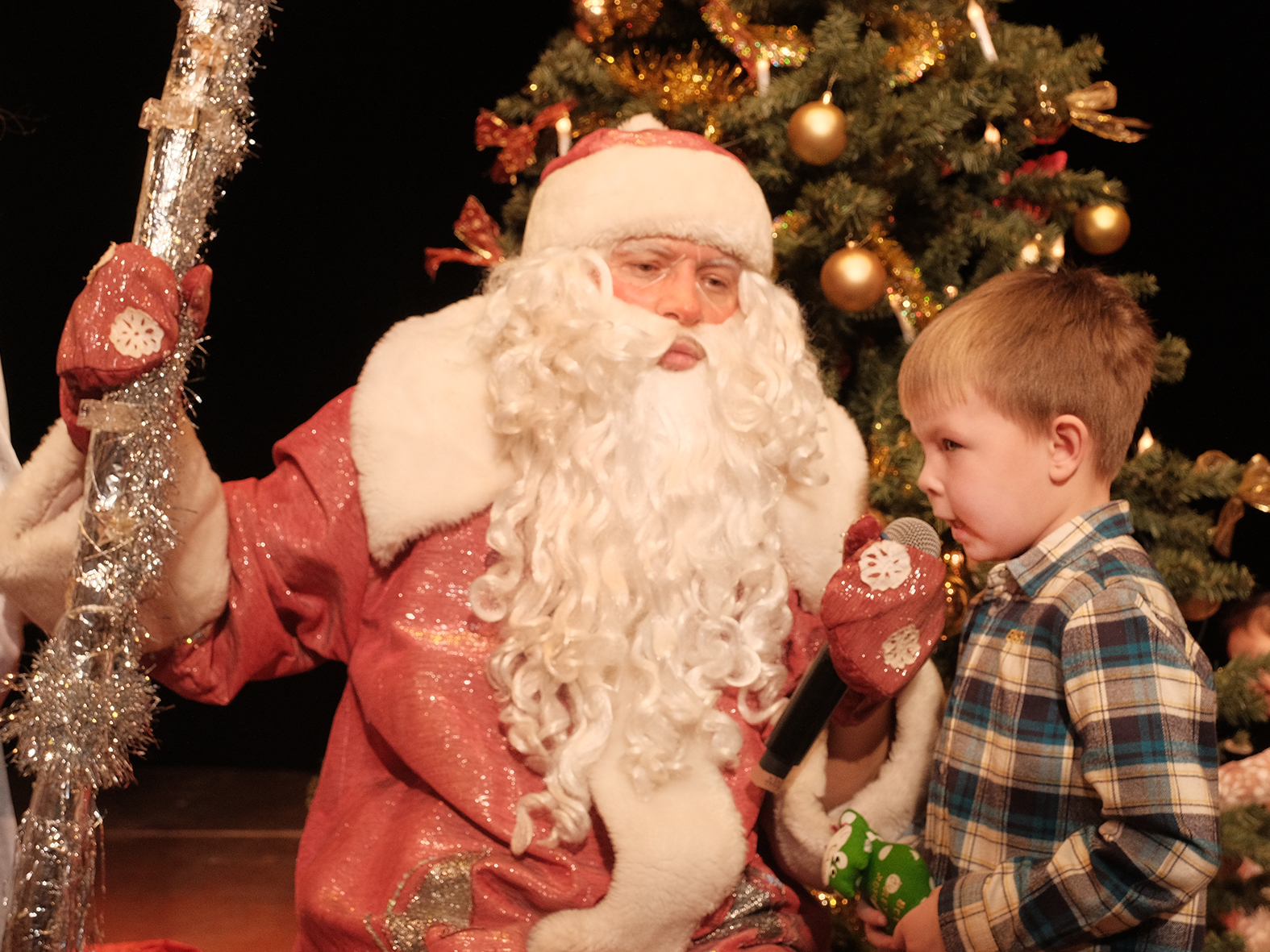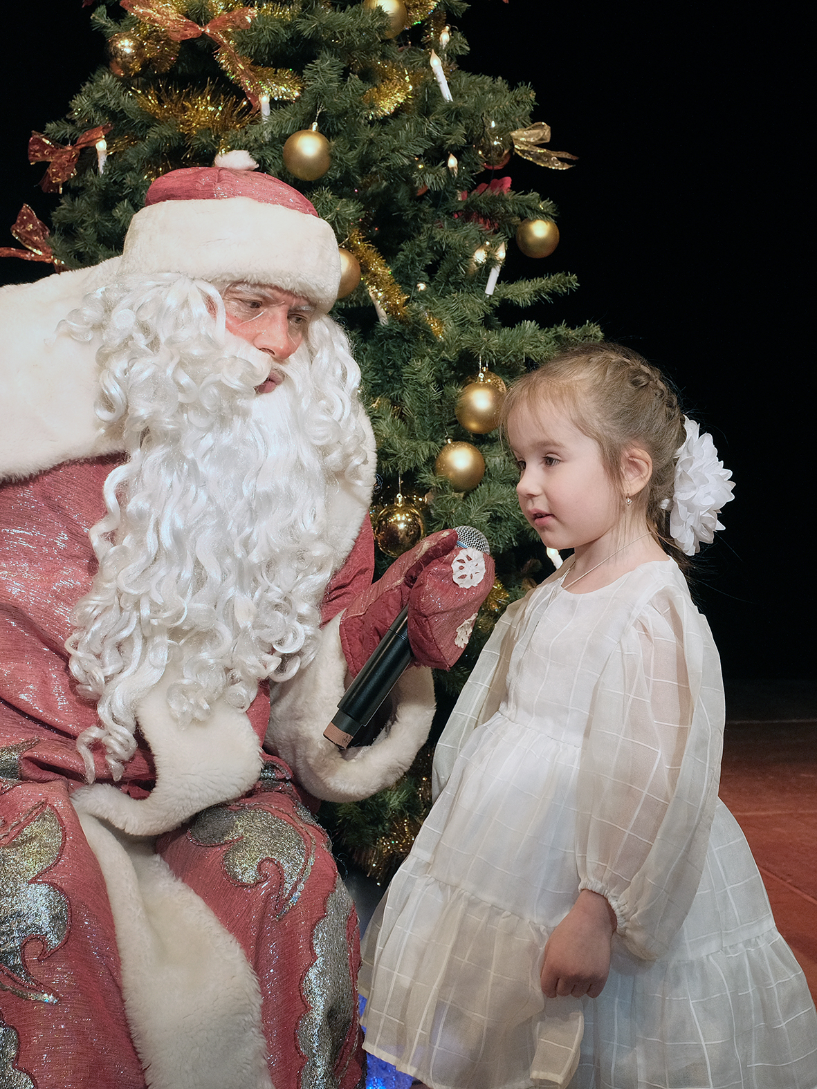 В этом году юных гостей ждал увлекательный новогодний интерактив: весёлые конкурсы, хитроумные загадки и занимательные задания. Кульминацией праздника, как всегда, стали тёплые пожелания и долгожданные подарки от Деда Мороза и Снегурочки.