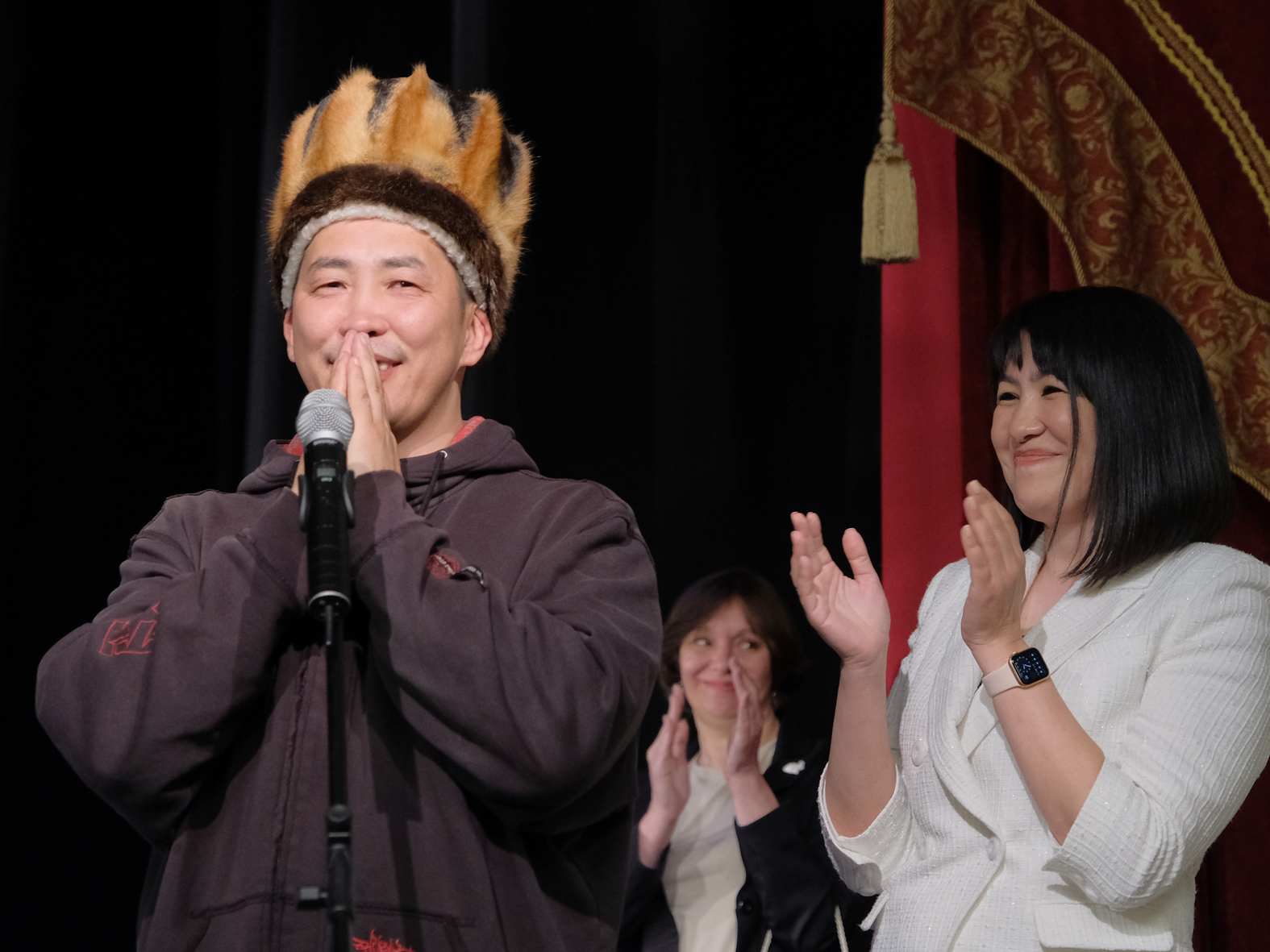 Особенно тепло зрители встретили артиста нашего театра Амаду Мамадакова, который родился в Горно-Алтайске. На спектакле присутствовали мама и сестра Амаду. Мама не скрывала своих эмоций – увидеть своего сына в главной роли в спектакле московского театра было для нее настоящим счастьем.