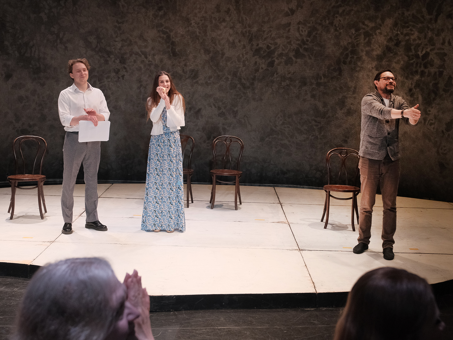 Зрители также стали участниками экскурсии по театру, узнали об его устройстве и познакомились с закулисным пространством "Et Cetera". В разных его локациях актеры Екатерина Егорова и Павел Суханов прочитали отрывки из произведений Марка Твена.