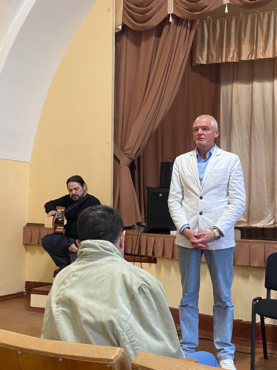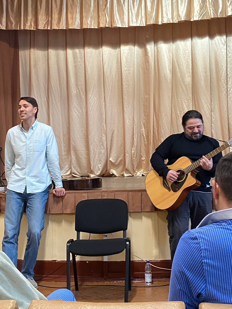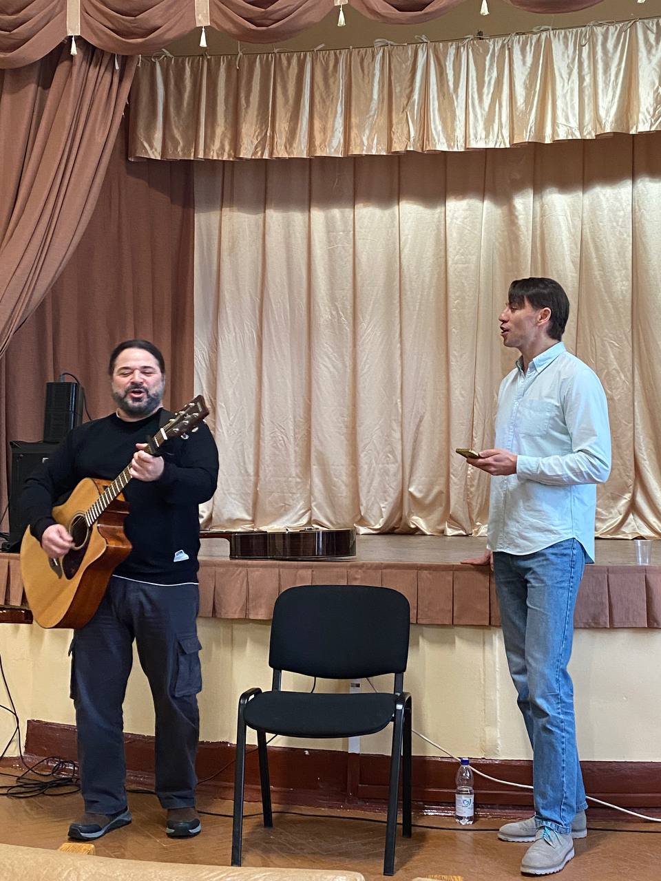 Артисты подготовили музыкально‑поэтическую программу: спели под гитару, прочитали стихотворения и душевно пообщались с бойцами.