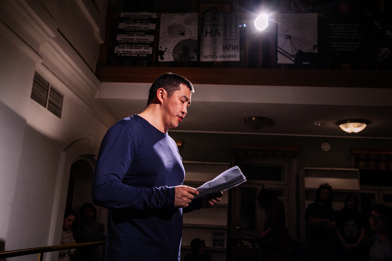 28.04.201524 апреля наши актеры и сотрудники приняли участие в общегородской акции Библионочь. Наши друзья ВШЭ и библиотека имени Тургенева пригласили нас поучаствовать в проекте "Дневник горожанина". Режиссером и координатором проекта выступила наш преподаватель по речи Валерия Устинова, а современные дневники читали наши актеры Ирина Макарова, Максим Ермичев, Амаду Мамадаков, помреж Ольга Моисеева и педагог по речи Елена Стефанко.