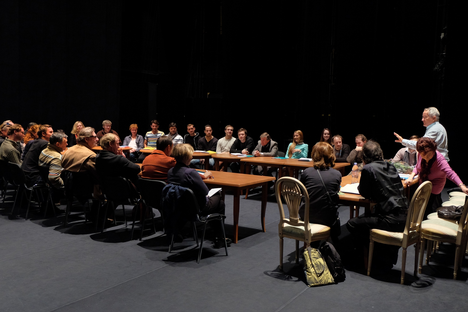 После этого Калягин представил режиссера труппе театра, а собрались практически все артисты театра. Он сказал: «Петер Штайн — выдающийся, великий режиссер, который много работал в русском театре, который хорошо знает русскую культуру. Его постановки русских драматургов хорошо известны в мире. Он приверженец системы Станиславского, скрупулезно работает над текстом, над каждым образом, и это честь для нашего театра, что такой большой Мастер будет работать с нашем театре».