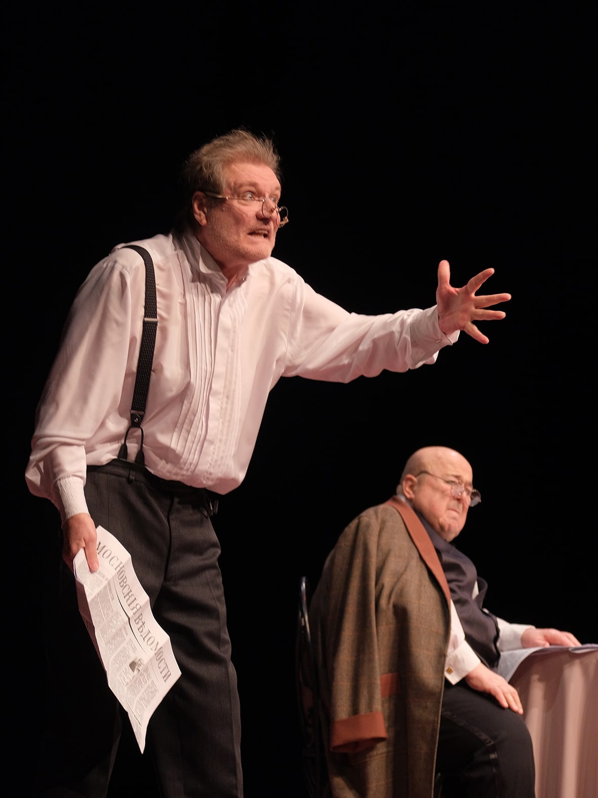 12.06.2023Вчера в городе Казани на сцене Татарского академического театра им. Г.Камала состоялся показ спектакля "Лица" с участием народных артистов России Александра Калягина и Владимира Симонова. Спектакль одновременно завершил международный театральный фестиваль тюркских народов "Науруз" и открыл гастроли театра "Et Cetera", которые продлятся до 13 июня.